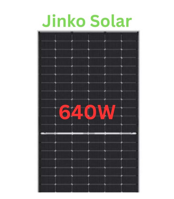 • Jinko 640W N Type Bifacial 20 BB is a high-end Tiger Neo dual-glass panel designed for premium commercial and large residential systems.